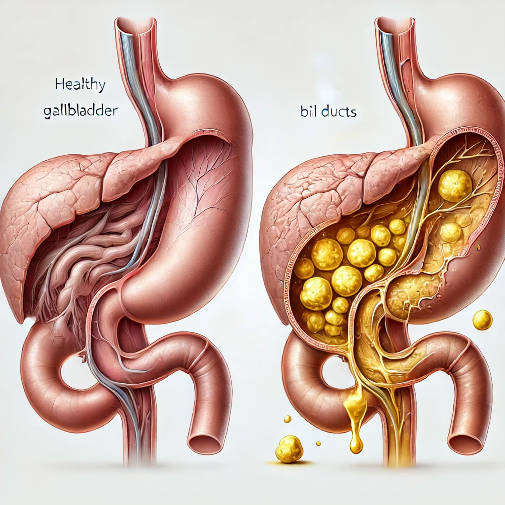 담석증은 담낭에 저장된 담즙이 딱딱한 돌(결석)처럼 굳어져 발생하는 질환입니다. 담낭은 간 바로 아래에 위치해 있으며, 식사 시 담즙을 십이지장으로 배출하여 지방 소화를 돕습니다. 그런데 담즙 내 콜레스테롤이나 빌리루빈 등의 성분이 균형을 잃으면 담석이 만들어질 수 있죠.