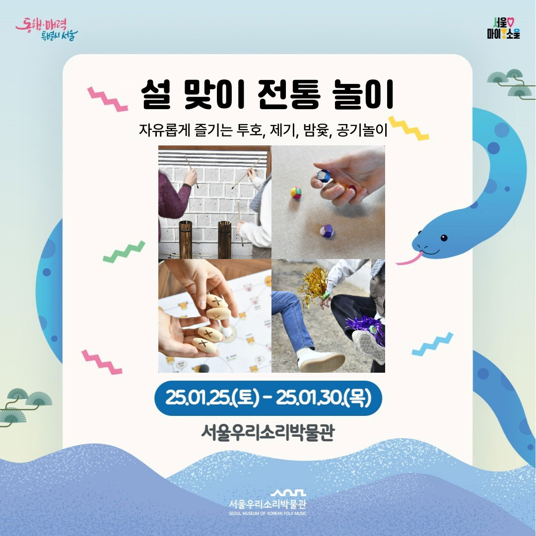 서울역사박물관에서는 설날을 맞아 설맞이 한마당 행사를 진행합니다. 이곳에서는 서울의 역사와 문화를 배울 수 있는 다양한 프로그램이 준비되어 있어 가족과 함께 즐기기 좋습니다.