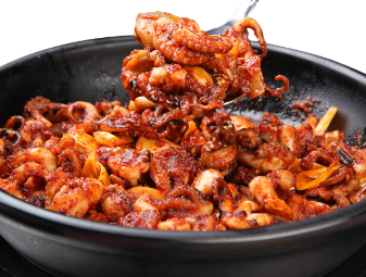 주꾸미의 탱글한 식감과 매콤한 양념이 어우러진 볶음 요리는 피로 회복과 스트레스 해소에 효과적입니다.